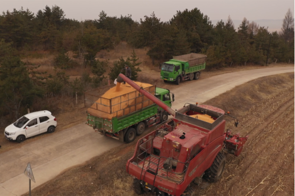 伴随着玉米收割机隆隆的轰鸣声,农地里玉米正在陆续收获归仓,金黄的玉米粒被装入了运输车,收割、收棒一气呵成。各地农民抢抓农时,田间地头一派秋收的繁忙景象。广袤的土地上,玉米秋收工作接近尾声。