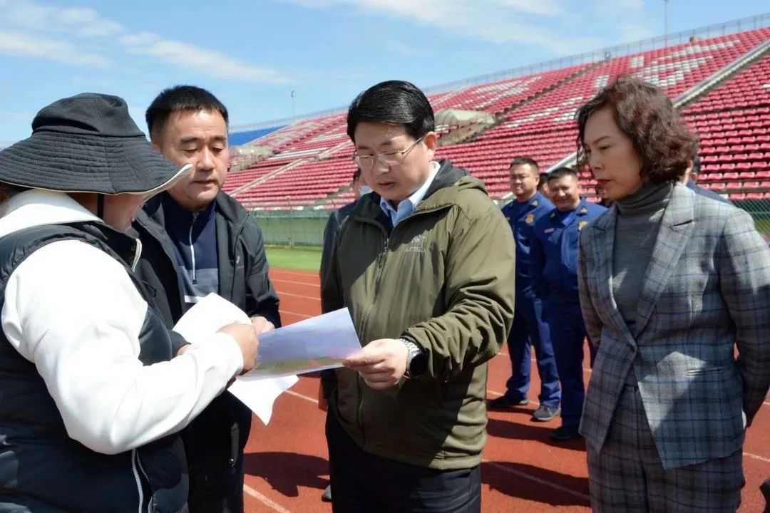 4月26日,市委书记朴君峰到海兰江体育场调研2023龙井“延边之春”梨花节各项工作筹备情况,副市长丁宁以及相关部门负责人陪同调研。