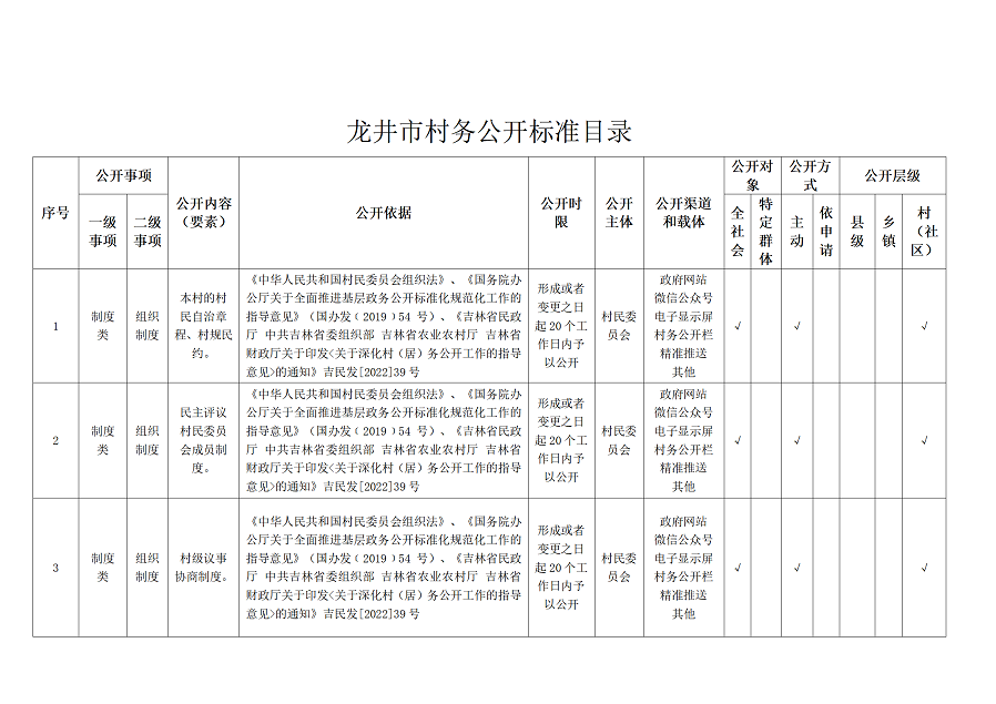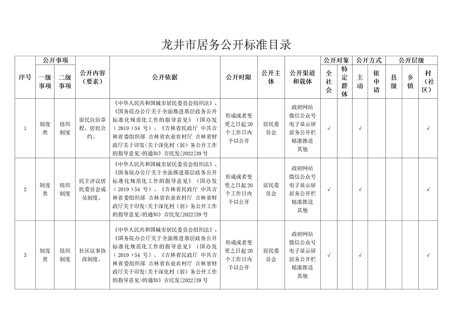 | 标 题: | 龙井市村(居)务公开标准目录 |