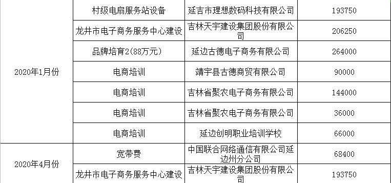 根据2017年龙井市电子商务进农村综合示范项目资金使用方案及2019年龙井市电子商务进农村综合示范项目资金使用方案,对通过申报、招标中标单位进行阶段性验收后进行拨款。现将2020年1月--2020年6月资金拨付情况进行公示。